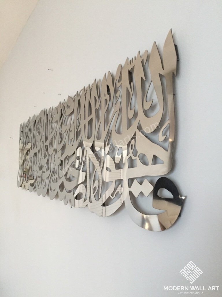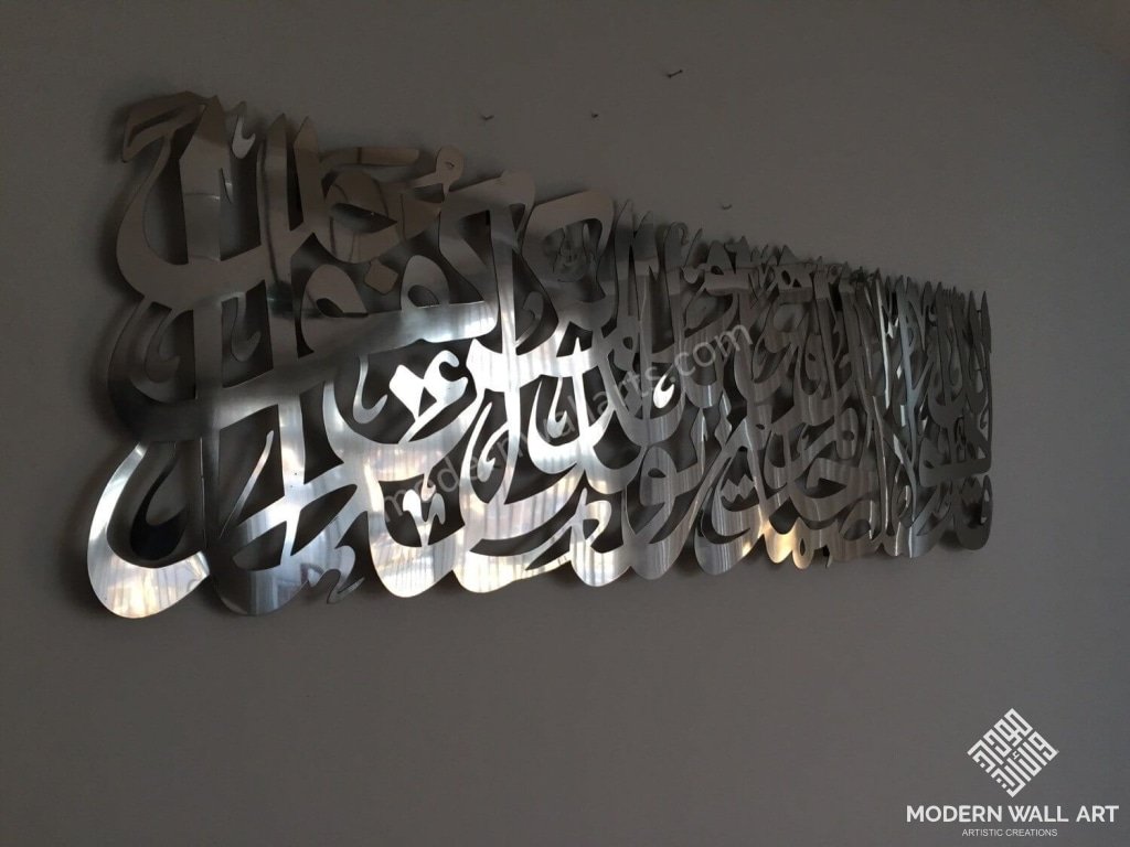 Beautiful plate cut in Surah Ikhlas. This item comes with wall hangers for easy installation. Due to the length of the item, it will be a little wobbly while handling. Once hung on the wall, it will be firm and secure.