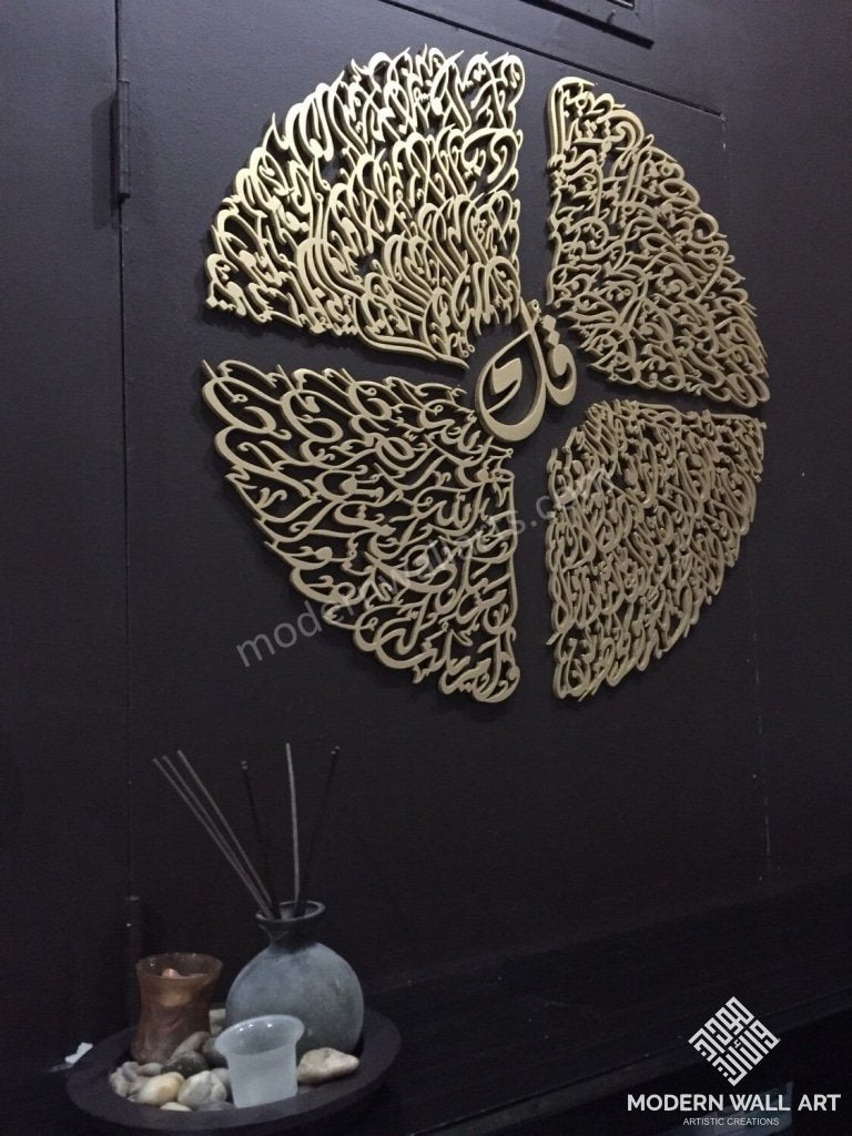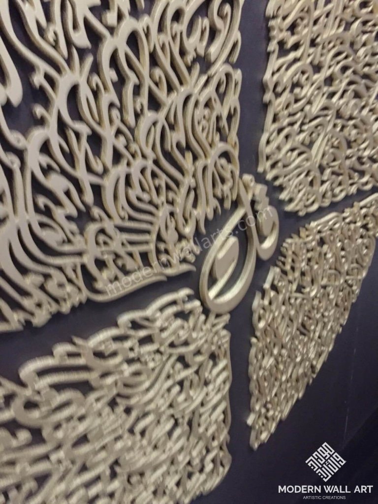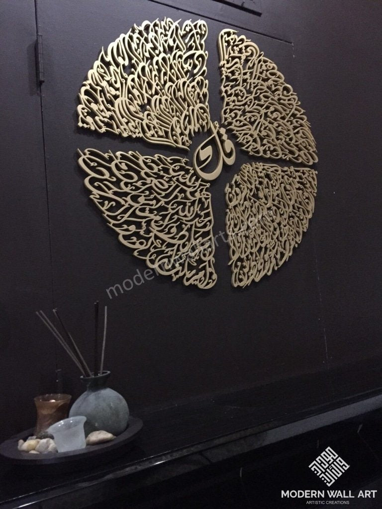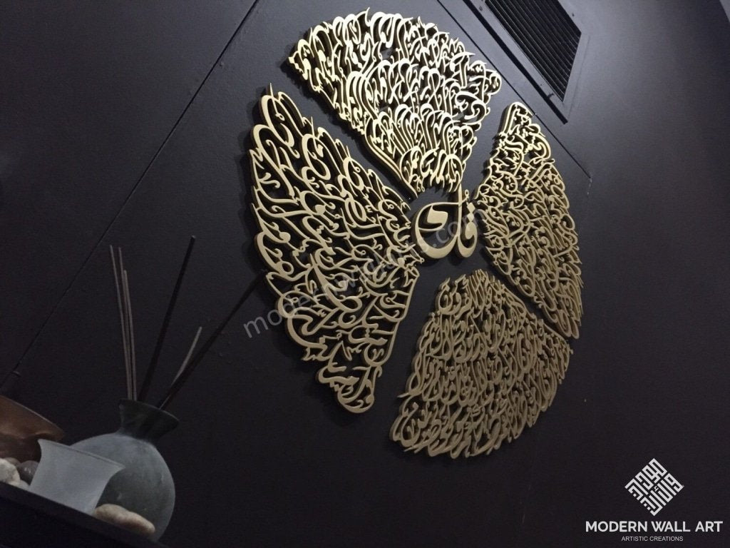 Item: 4 Qul Surah Material: Wood Item size: 33"hx 33"w. Up for sale is unique handmade 4 Qul Surah art. This item is lightweight and can easily hang on a few nails. There are many color options to choose from. Item is in 5 parts.