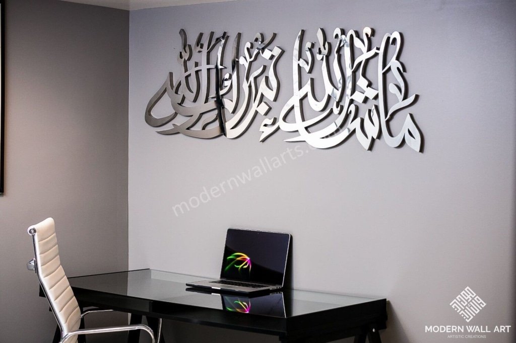 This item is made to order. Could take up to 50-60 days for making. It's cut in 2 pieces, so it can be shipped easily. When hung together it looks seamless due to the style of calligraphy. This art is also available in other colors like white, black, espresso, gold, and silver. These colors could be additional cost. Please contact us for details.