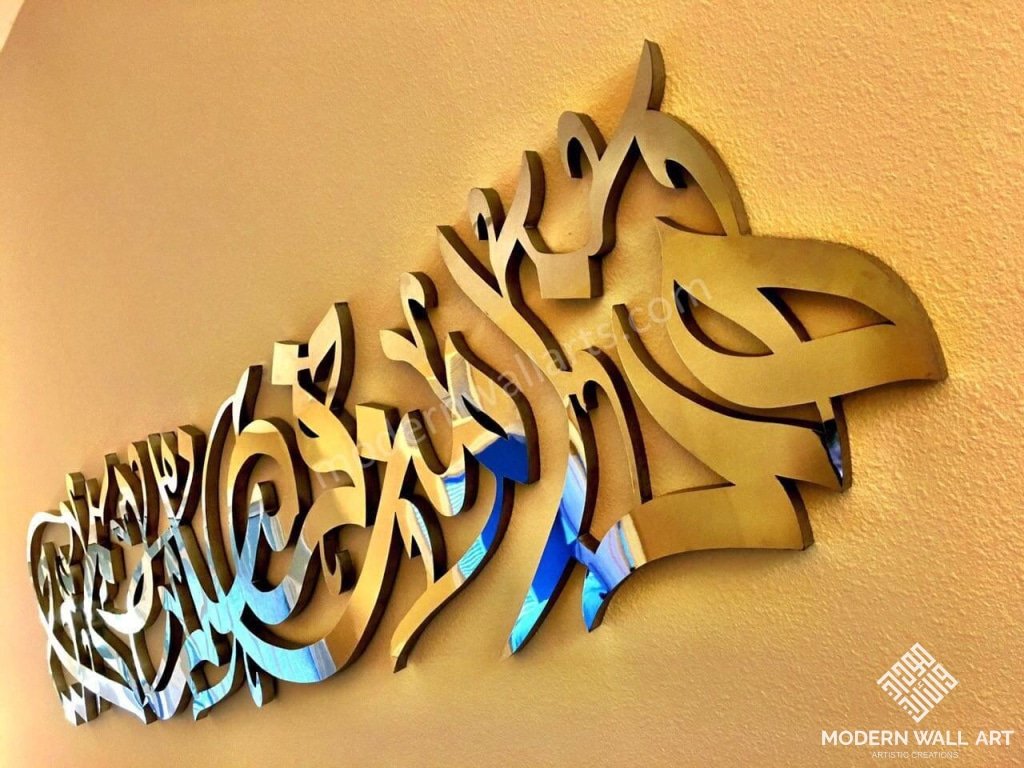 Item: Haza min fadli rabbi Meaning: "this is due to grace of God" Material: Stainless Steel Size: 6ft w x 17"h (or proportional)
