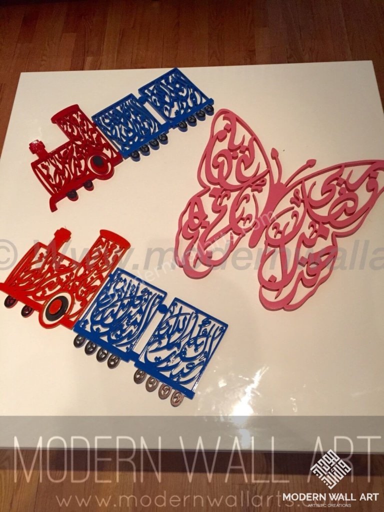 Item : Dua train Color : red and blue Making time : 4 weeks Size : 19"w x 10"h Material : wood Beautiful train art for kids play or bedroom. Many clients have found this...