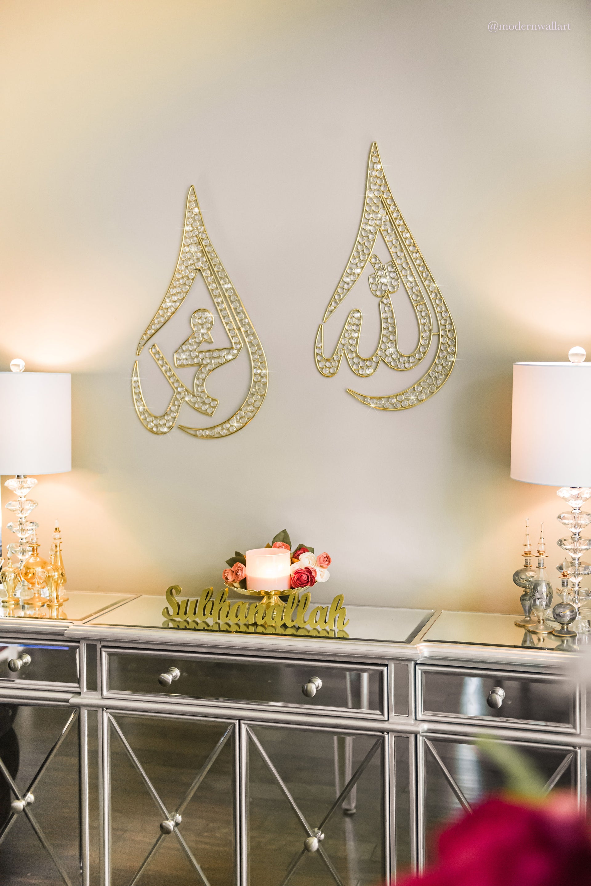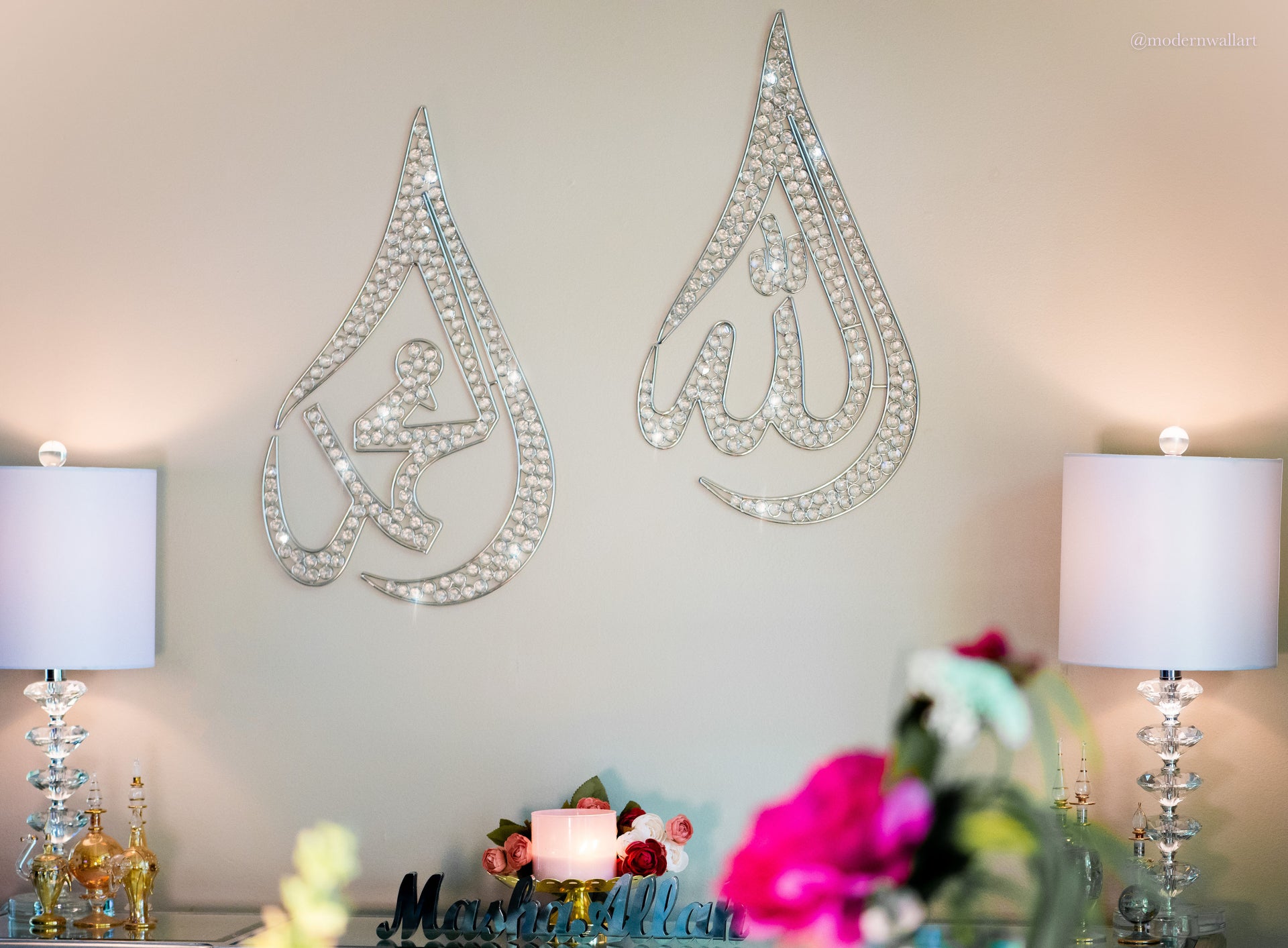 Tear Drop Metal Wire with Rhinestones- Allah or Mohammed