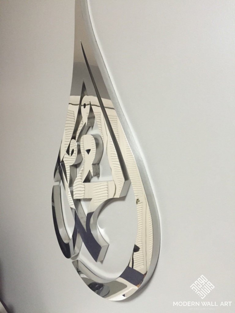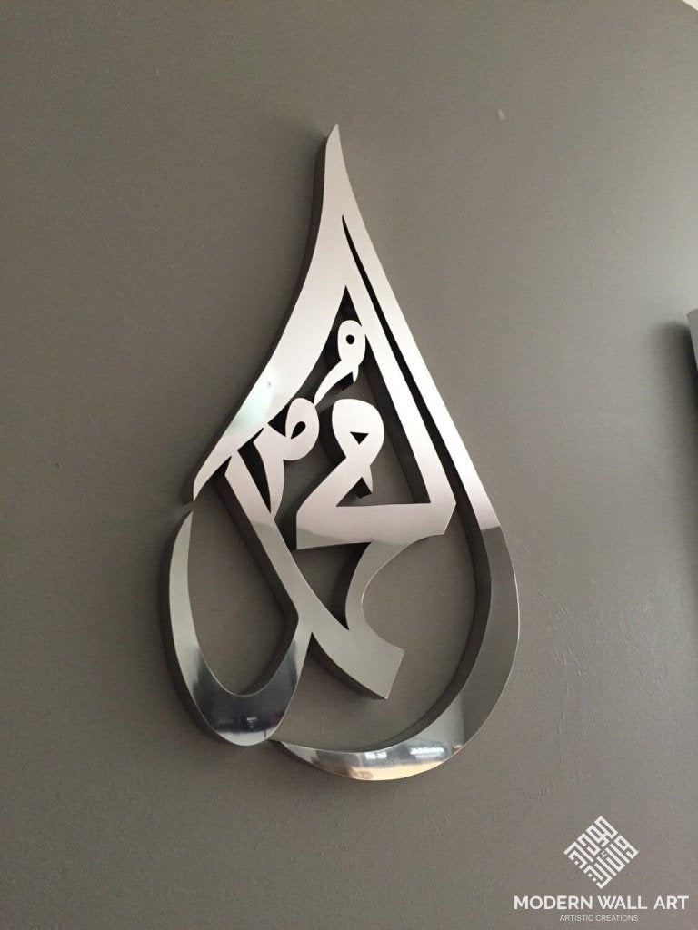 Item: Mohammed Tear Drop Material: Stainless Steel This item is special order only! It takes about 4-6 weeks to make this piece of art. Up for sale is a unique, high quality, stainless steel tear drop Mohammed art for your wall. The item is lightweight for its size. Your friends and family will really appreciate this beauty and your choice. Disclaimer: Items are handmade and may come with a few imperfections, but they are usually hidden on the side and are not noticeable. Any questions? Feel free to ask. We also do custom work, so if you have a design in mind, contact us and we can discuss possibly creating it! Text, call, whats app me at +1 (224) 522-3297 or message me. If you do not see your country in our listing, please contact us. We ship worldwide!