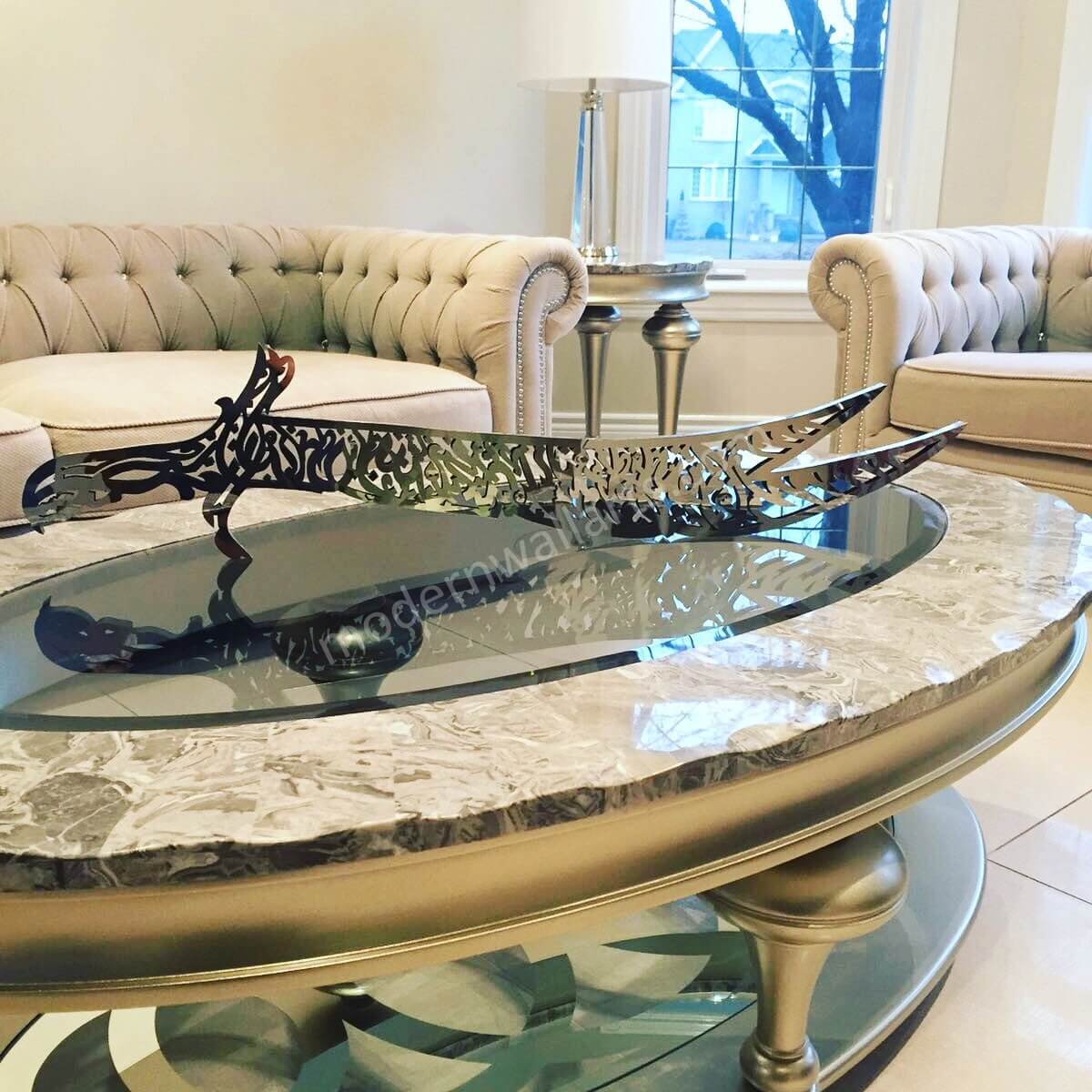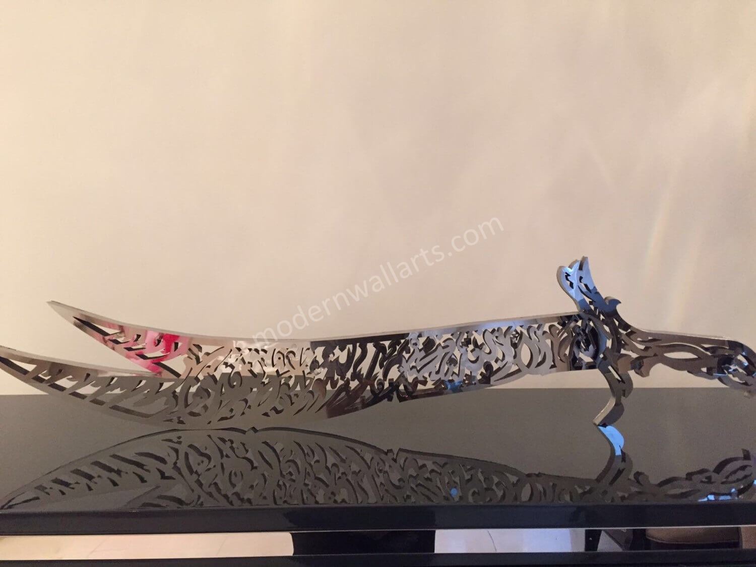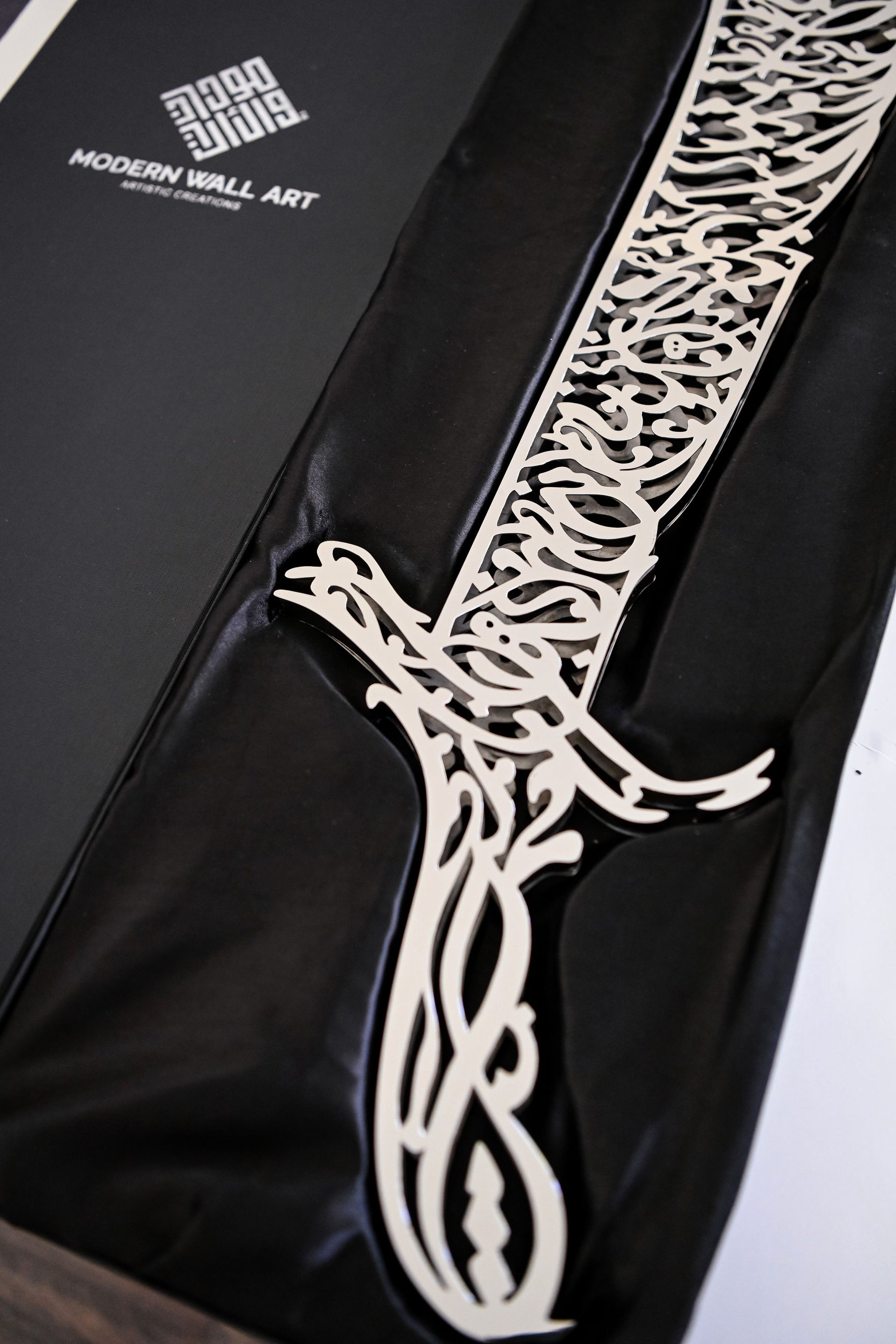 Up for sale is unique hand Hazrat Ali sword with the Shahada. This item is lightweight and can easily hang on a few nails or rested on a table. Item is hollow from back.