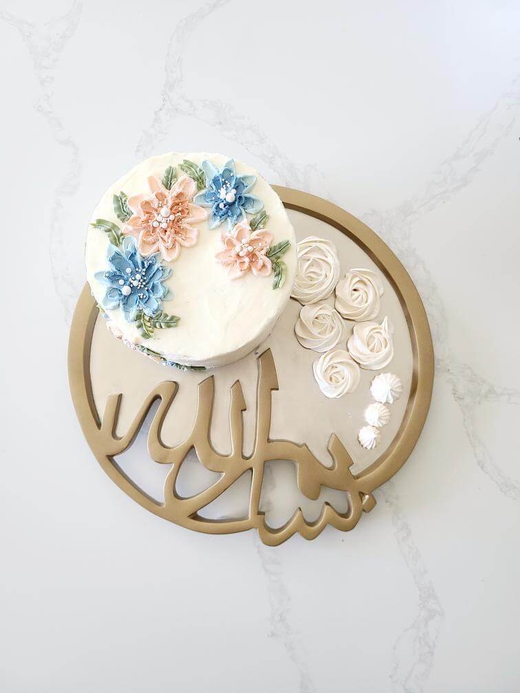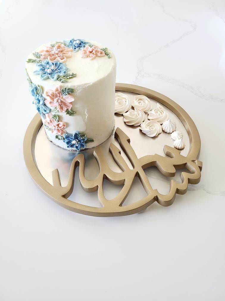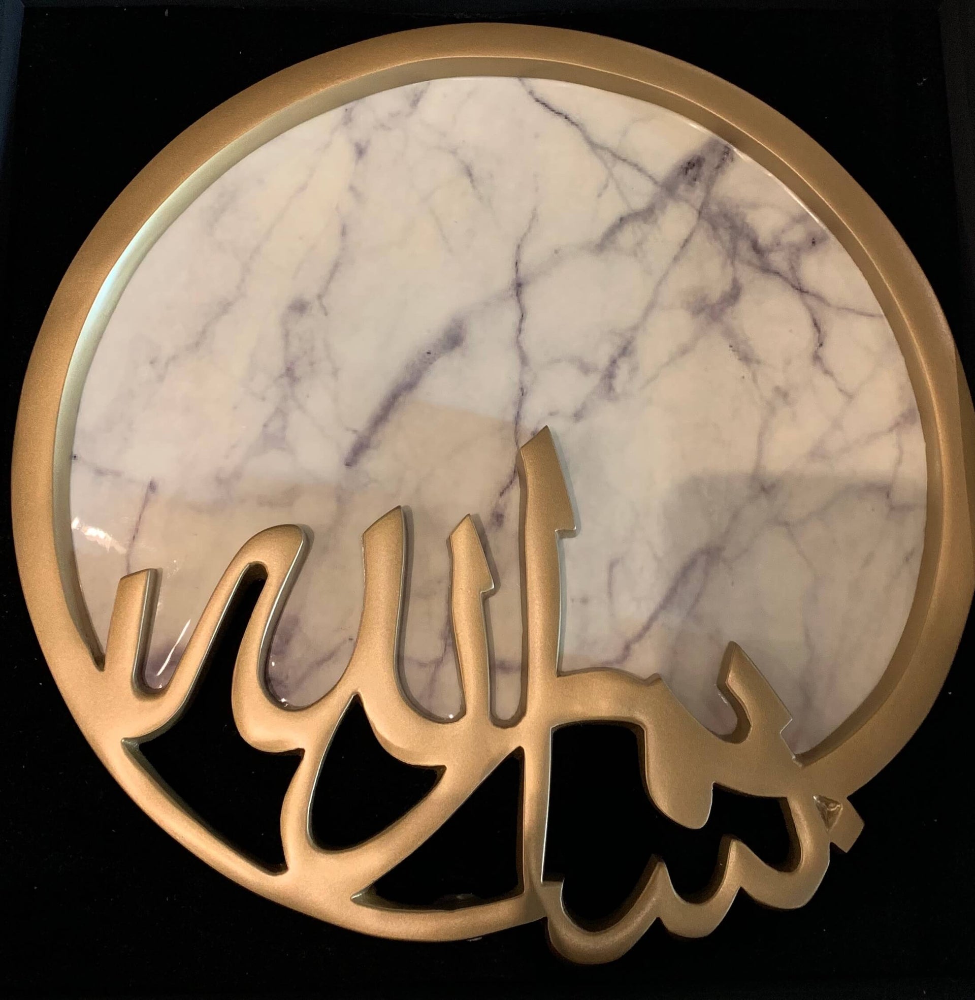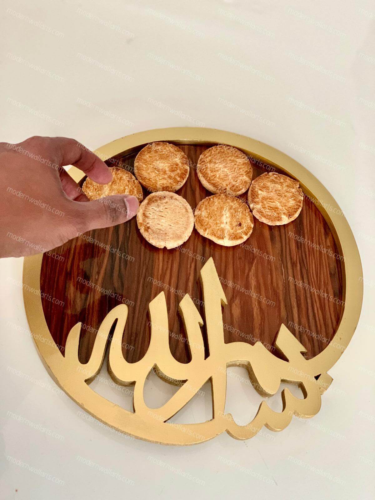 will ship in 5-6 weeks Size: Select from dropdown Material : wood/stainless steel color: Marble is a color and NOT the stone itself. These beautiful handmade Bismillah trays were originally designed for dates in Ramadan, but can be used throughout the year. We ship worldwide! Wood trays are not washable. They have to be cleaned with damp cloth; metal ones can be washed. If you have any question, please feel free to call 773 732 2911 or email sales@modernwallarts.com
