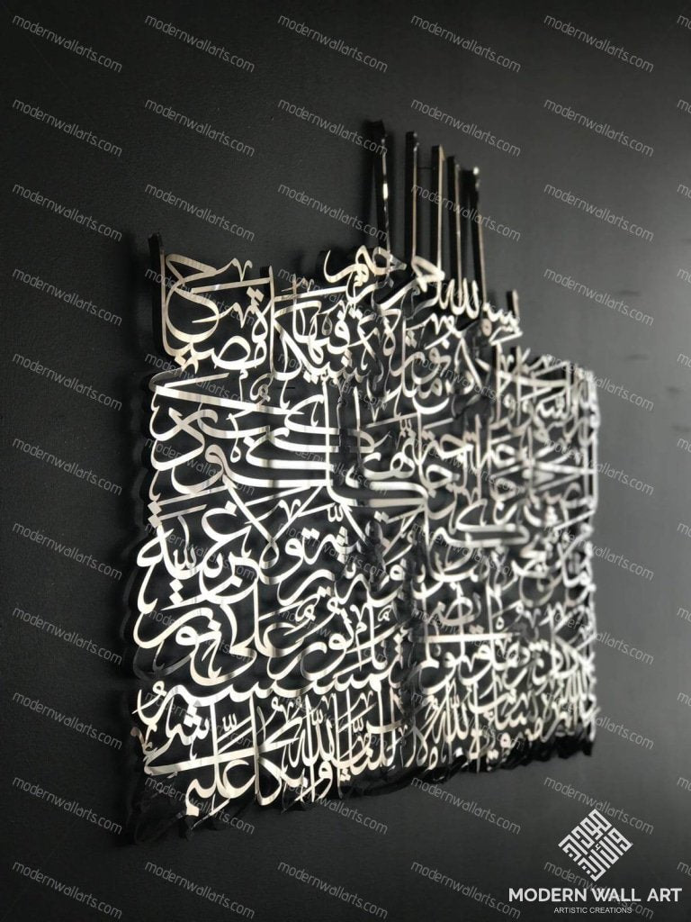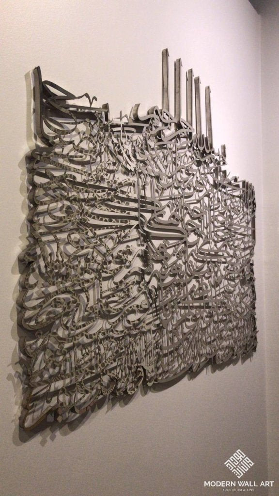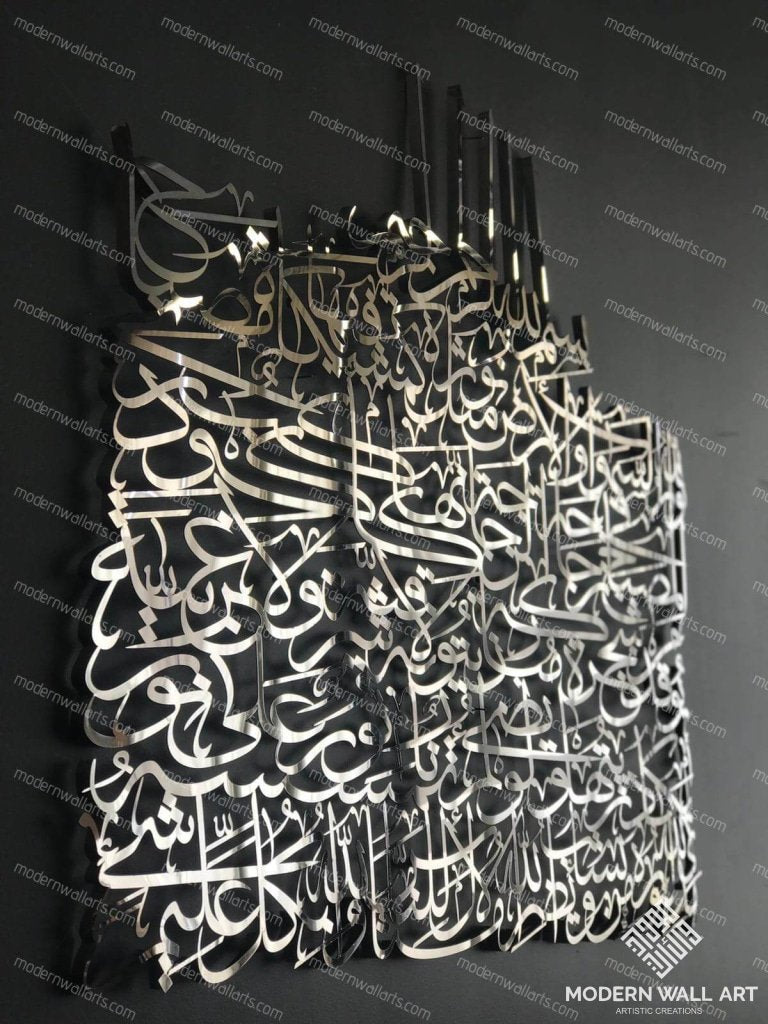 Item: Ayat Al NurMaterial: Wood or Stainless Steel (please select from drop down menu) Making Time: 60 days Size: 3 ft. x 4 ft. wide PLEASE NOTE THAT ALL COLORS ARE IN WOOD EXCEPT FOR...