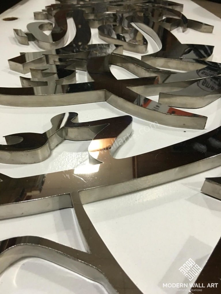 Modern Surah Rahman Fabi-ayyi ala-i rabbikuma tukaththiban Stainless Steel Arabic Calligraphy Art