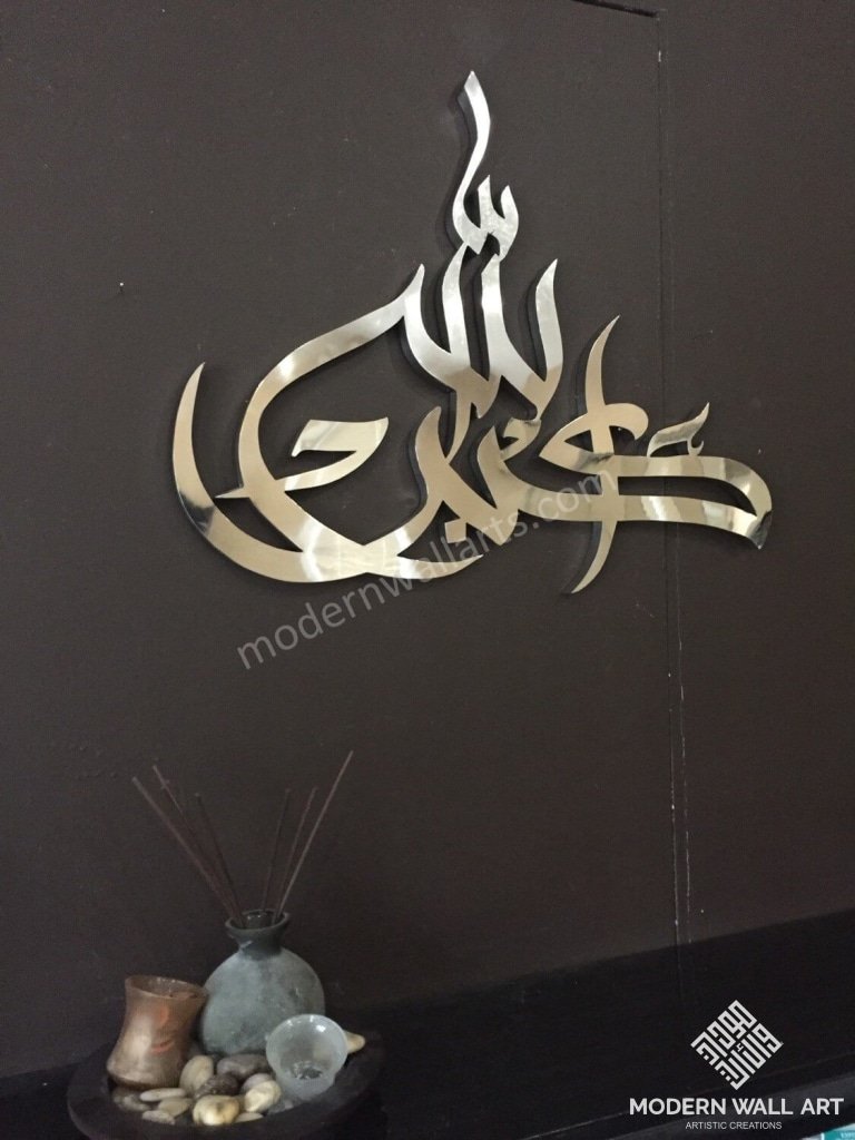 Up for sale is a beautiful and unique stainless steel with a chrome finish Allah ho Akbar piece. This item is lightweight although its look is heavy and can easily be hung on any type of wall.