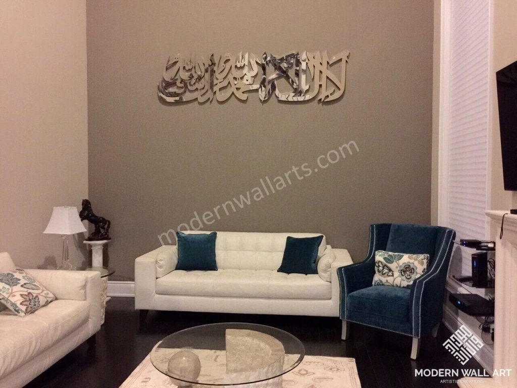 Item: Kalma/ Shahada Material: Stainless Steel This item is made to order . Could take up to 6 weeks for making. It's cut in 2-3 pieces, so it can be shipped easily . When hung...