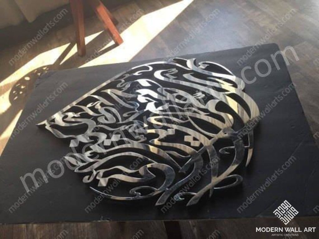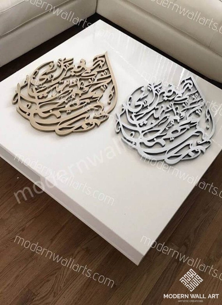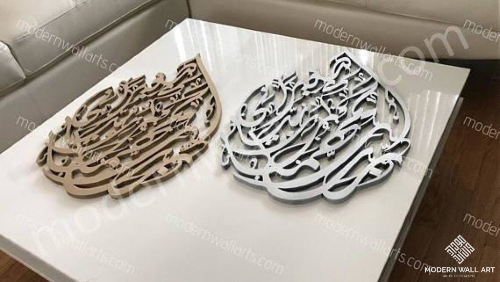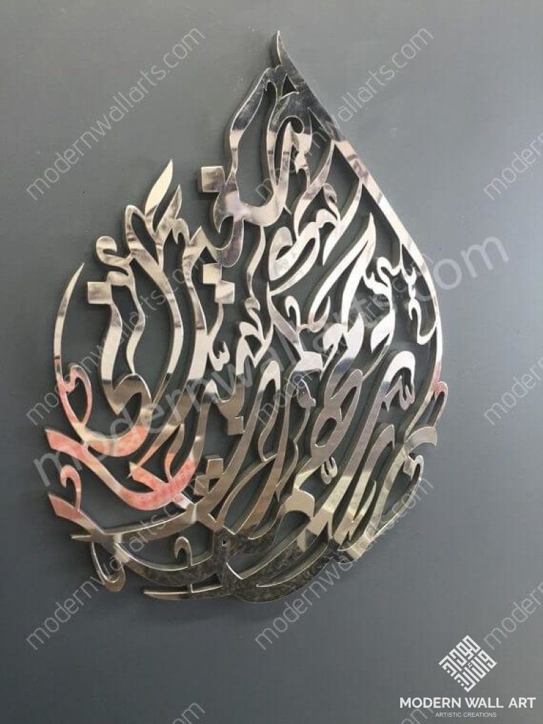 Item: parents dua art Verse: please refer to last pic Meaning : “My Lord! Bestow on them Your Mercy as they did bring me up when I was small.” [Quran; Surah Al-Isra, Verse 24] Transliteration: “… Rabbi irhamhuma kama rabbayanee sagheeran” Material: Stainless Steel is metal, all other colors are made out of wood Size: 24"h x 17" w Making time 40-50 days Up for sale is a beautiful, modern, contemporary, one of a kind stainless steel with a chrome finish Bismillah fixture. This item is very lightweight. However, the look is heavy. All the letters are in Arabic and you can give a desired space between them to give the piece a different look (wider or arc) based on your preference. I designed it like a lego block to give it a heavy look. The item is hollow from the inside so it can easily be hung on any type of wall. This item is one piece. Disclaimer: Items are handmade and may come with a few imperfections, but they are usually hidden on the side and are not noticeable. Any questions? Feel free to ask. We also do custom work, so if you have a design in mind, contact us and we can discuss possibly creating it! Text, call, whats app me at +1 (224) 522-3297. If you do not see your country in our listing, please contact us. We ship worldwide!