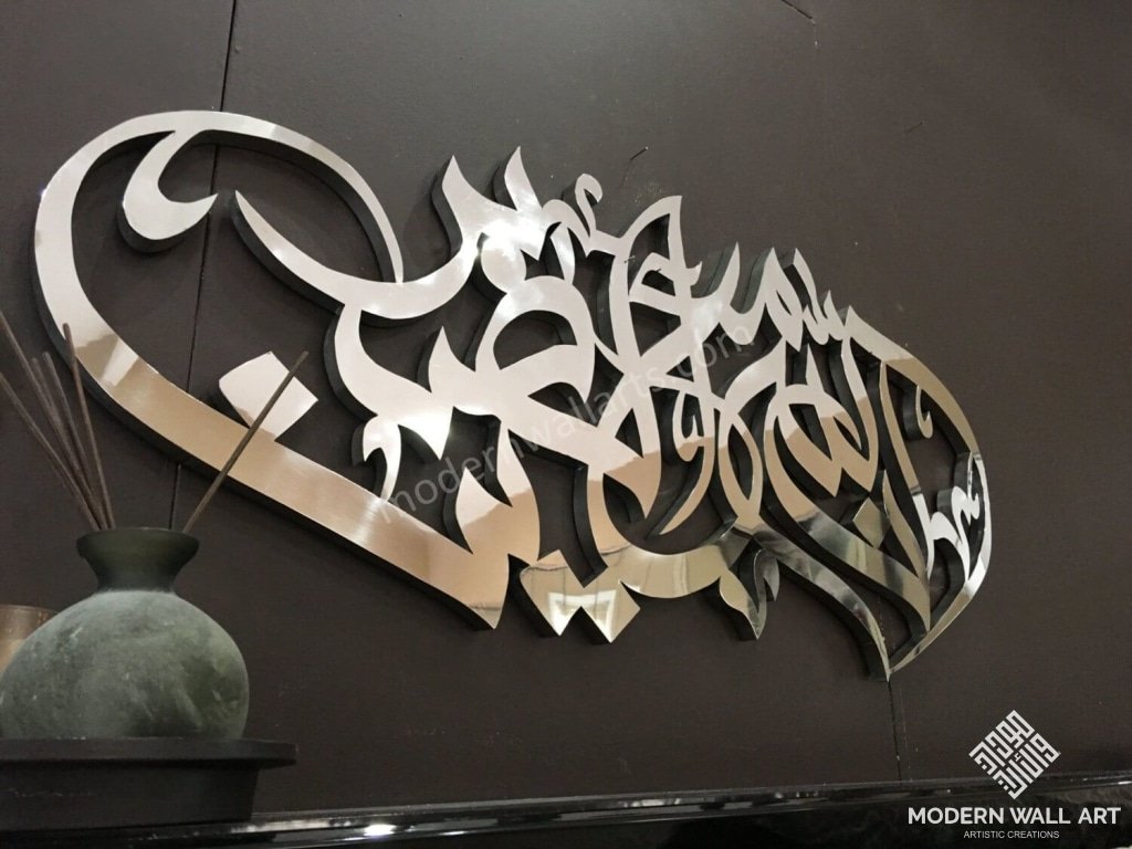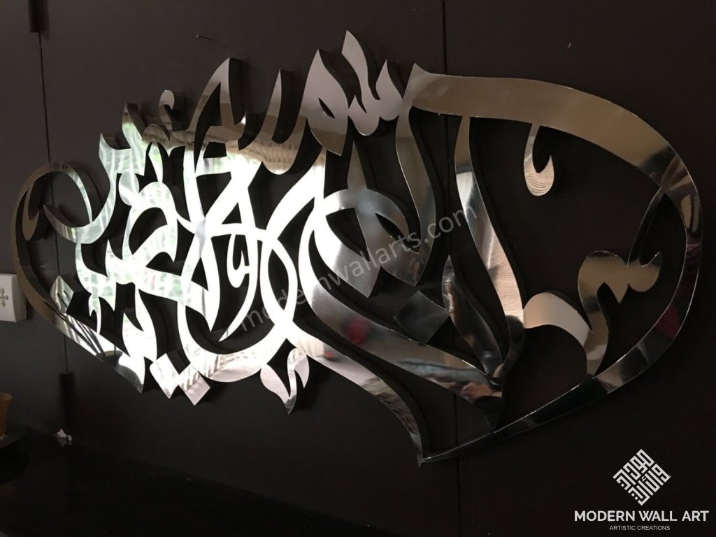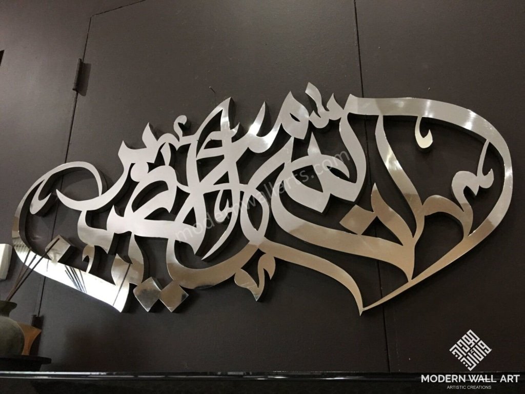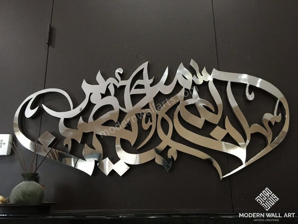 Item: InnAllaha Ma’ As’sabireen Meaning :“Verily, Allah is with the patient” Size: 47"w X 20"h Material: Metal Making time: 50-60 days Disclaimer: Items are handmade and may come with a few imperfections, but they are usually...