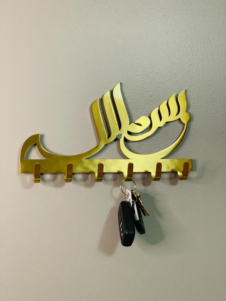 Description: If you liked our God Bless Key Holder, you will LOVE our new Bismillah Key Holder!! This high quality stainless steel key holder is the perfect gift you can find for under 60 pounds. It comes with gift box which makes it very presentable. Beautiful color choices of Gold and Silver!