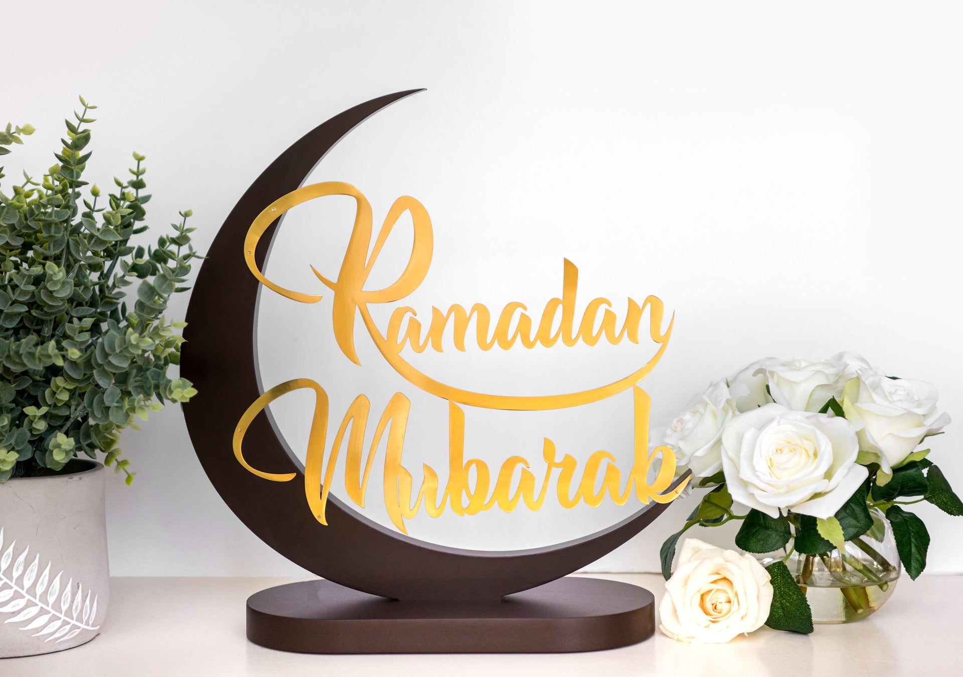 This beautiful "Ramadan Mubarak" table décor is an elegant way to decorate your homes this Ramadan. It is also the perfect Ramadan gift for family and friends!