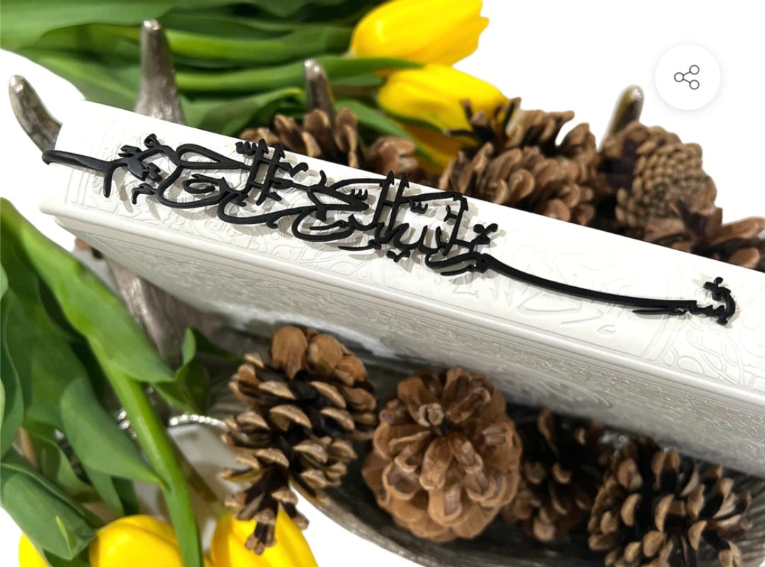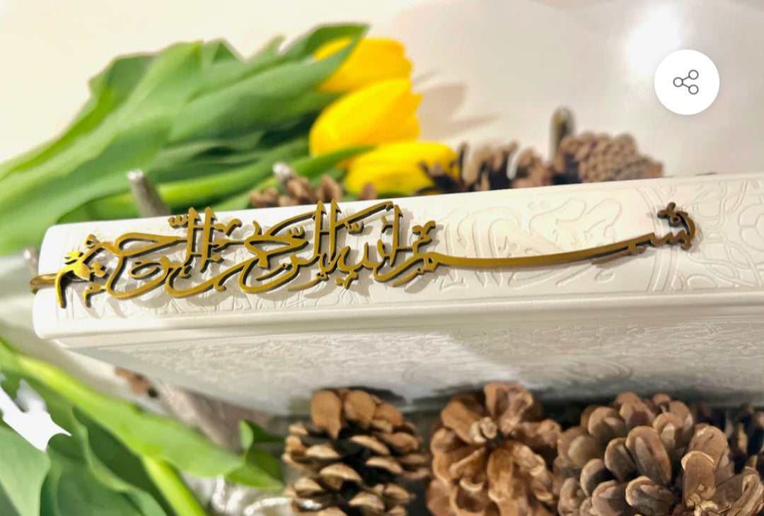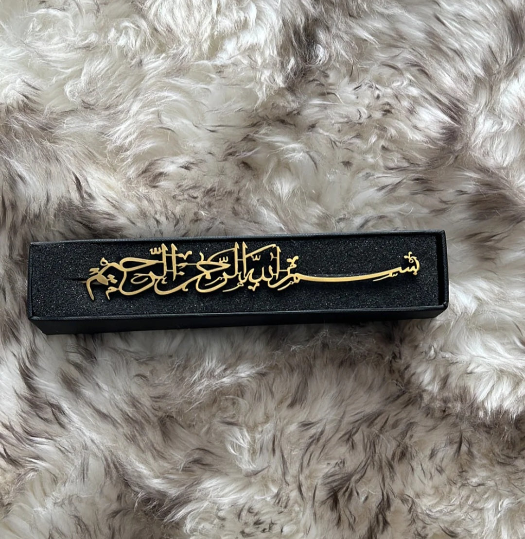 Make this beautiful bookmark part of your Quran recitation journey and make it easy to find what the last ayah you read. The bookmark reads Bismillahir Rahmanir Raheem' الرَّحِيْمِ الرَّحْمٰنِ اللهِ بِسْمِ meaning, "In the Name of Allah, the Beneficent, the Merciful"